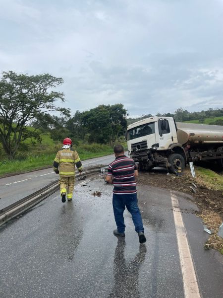 Um caminhão-tanque se envolveu em um acidente na tarde desta sexta-feira (19), na rodovia BR-381, na altura do km 605, no município de Oliveira, no Centro-Oeste de Minas Gerais. A ocorrência mobilizou equipes do Corpo de Bombeiros Militar e da concessionária responsável pelo trecho, gerando atenção redobrada de motoristas que trafegavam pela via.