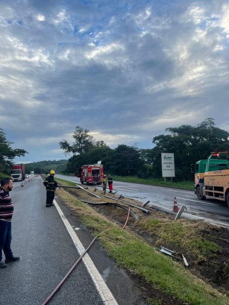 Não houve registro de vazamento de combustível nem feridos. As equipes do Corpo de Bombeiros permaneceram no local em prontidão preventiva, com o objetivo de eliminar qualquer risco de ignição ou explosão e garantir a segurança dos envolvidos e dos demais usuários da rodovia.