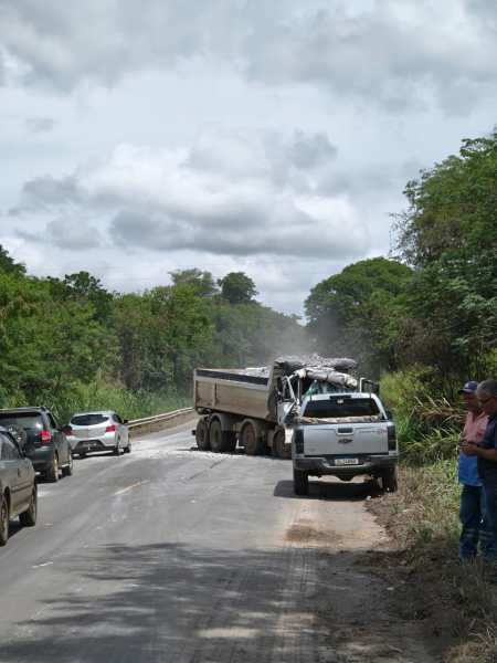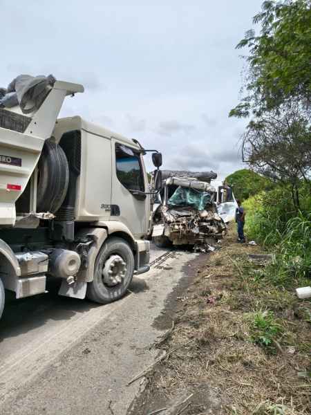 O Corpo de Bombeiros Militar foi acionado para prestar apoio ao SAMU, que já se encontrava no local realizando o atendimento à vítima. De acordo com as informações apuradas na cena, um dos caminhões colidiu na traseira de outro veículo de carga que trafegava pela rodovia.