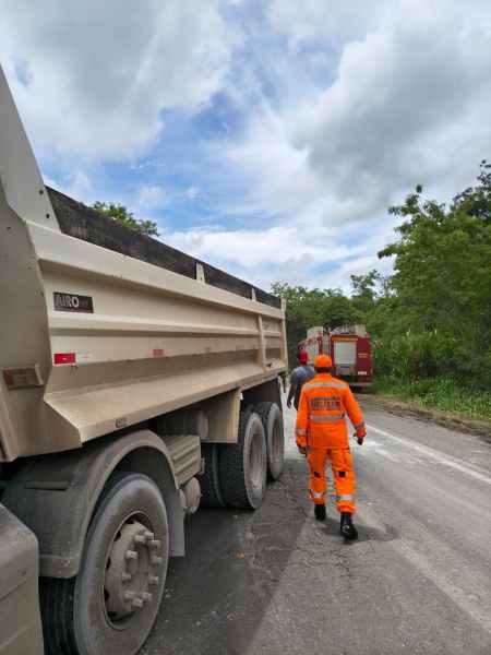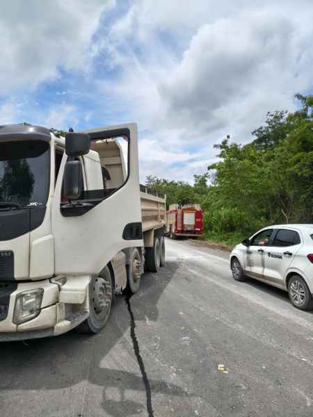 Quando os bombeiros chegaram, a vítima já havia sido retirada do interior do caminhão pela equipe do SAMU, que realizava os procedimentos de atendimento pré-hospitalar e o preparo para o encaminhamento à unidade de saúde.