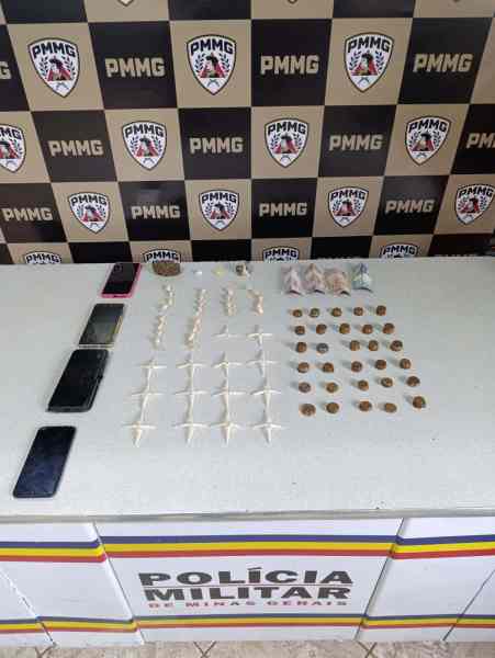 Durante buscas no imóvel, foram localizados dezenas de pinos e buchas de cocaína, tabletes de maconha, comprimido de ecstasy, dinheiro e aparelhos celulares. Os dois autores foram presos em flagrante e apresentados à autoridade policial.