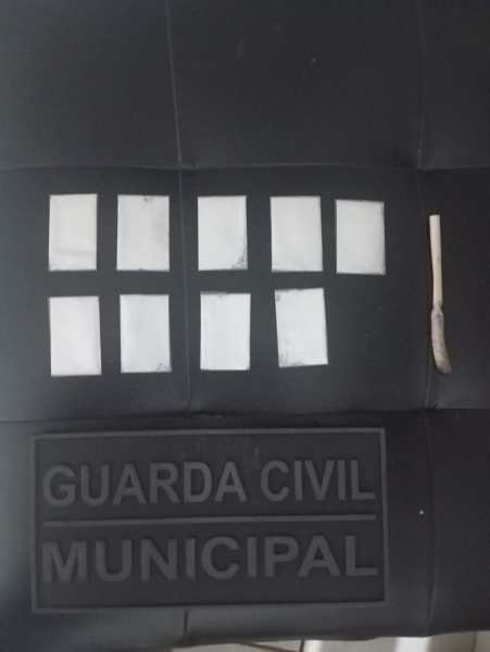 Ainda em fuga, o suspeito dispensou um invólucro, que foi recolhido pelos agentes. O material continha nove porções de substância semelhante à cocaína, confirmando a suspeita inicial de tráfico no local. A perseguição continuou por algumas quadras, até que o indivíduo foi alcançado e contido pelos guardas. Mesmo após ser interceptado, ele resistiu ativamente à intervenção e precisou ser algemado.